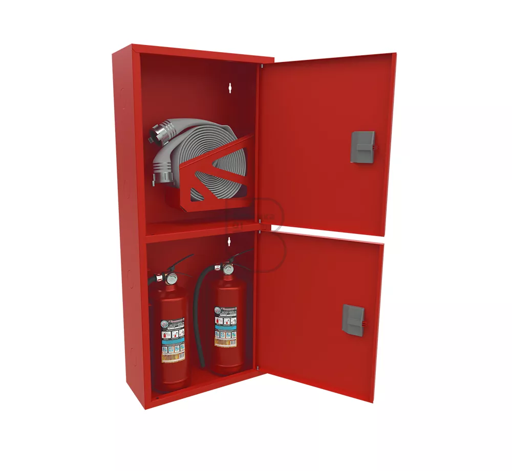 Шкаф пожарный ШПК-320 НЗК Премиум – предназначен для размещения и хранения рукава пожарного в сборе, пожарного вентиля (клапана) и двух огнетушителей до 8 литров. Шкаф оборудован кассетой (турелью) для пожарного рукава.