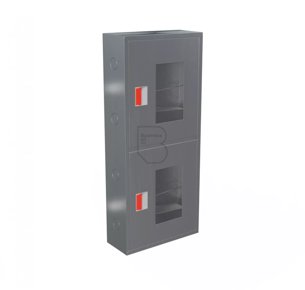 Дверцы пожарного шкафа открываются на 160 градусов. Имеют запорное устройство в виде пластиковой защелки.